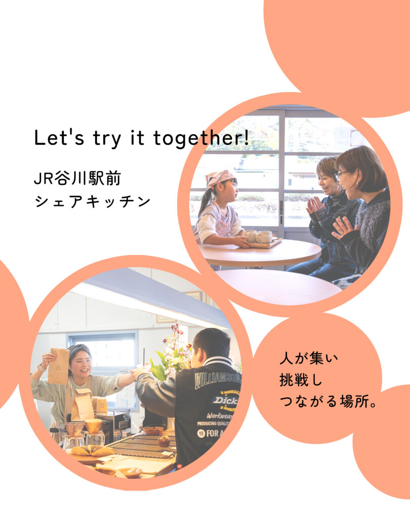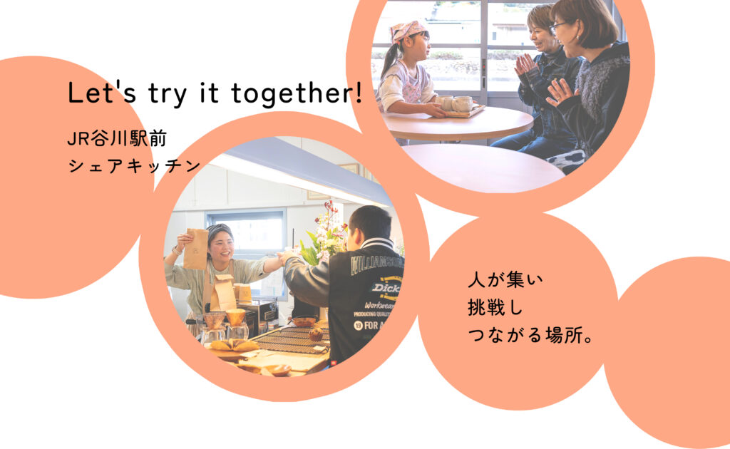 JR谷川駅前にあるサンキッチンは、地域の「やってみたい」が形になるシェアキッチンです。空き物件を活用してリノベーションし、料理やお菓子づくりに挑戦したい人が一歩を踏み出せる場として生まれました。